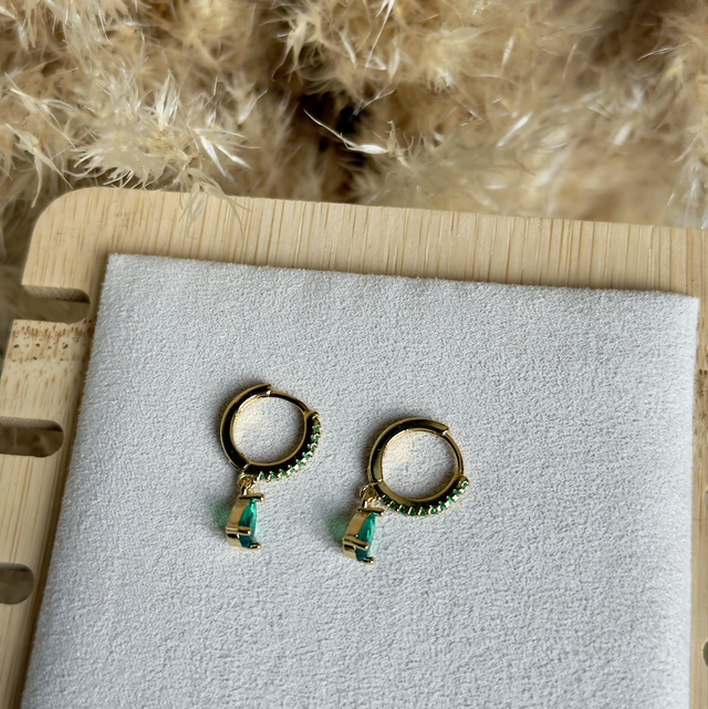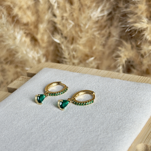 Créoles en acier et cuivre, strass vert.