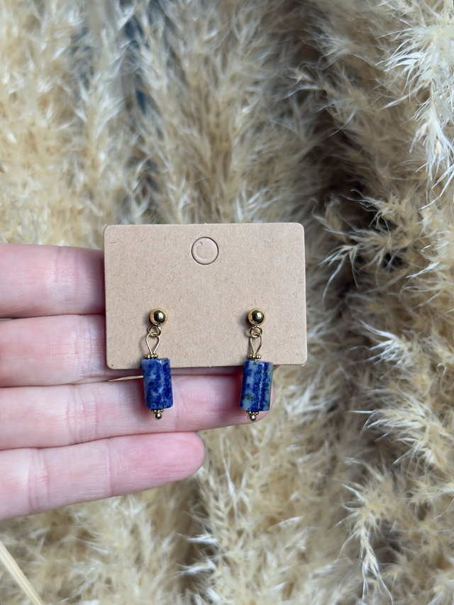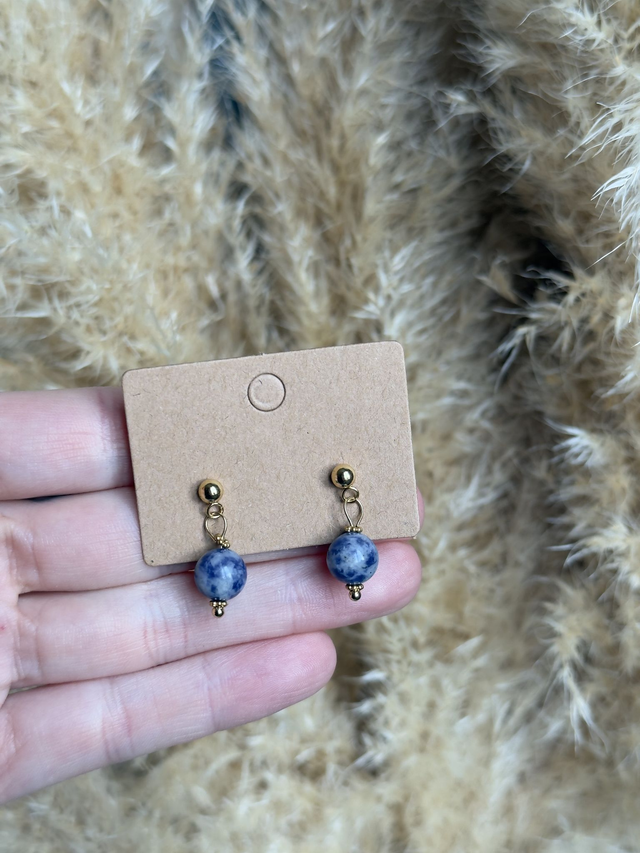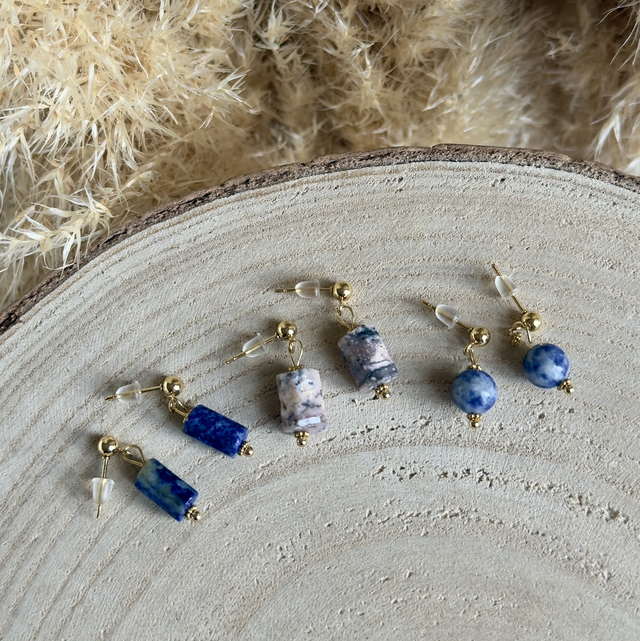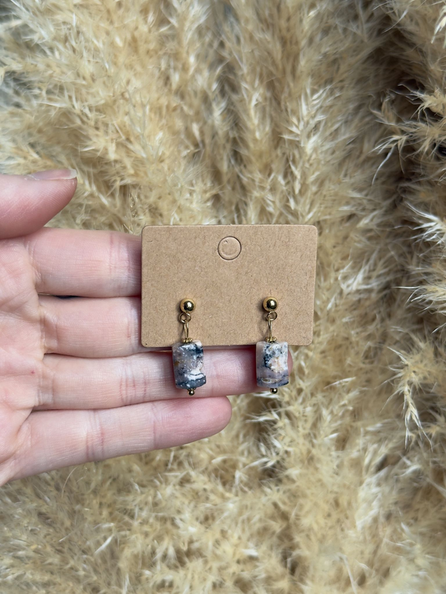Puces d'oreilles pendantes en acier inoxydable et pierre naturelles