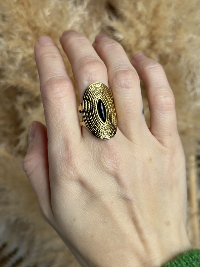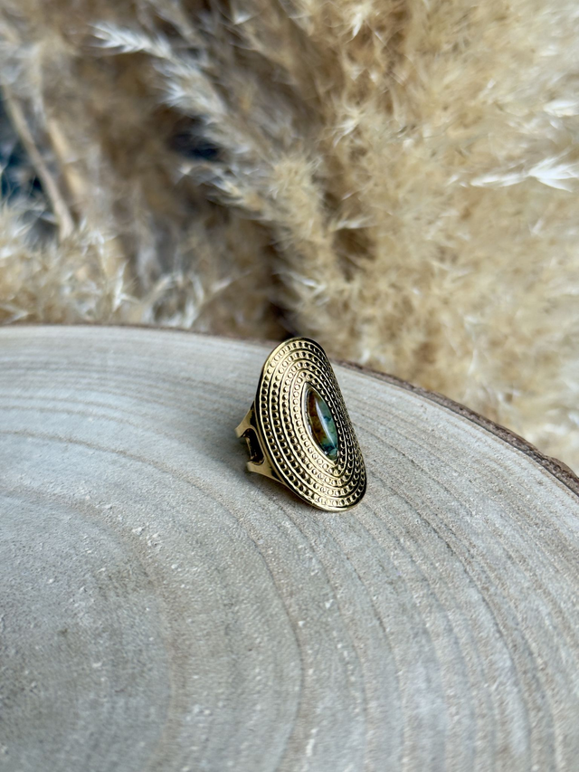 Bague réglable en acier inoxydable et pierre naturelle.